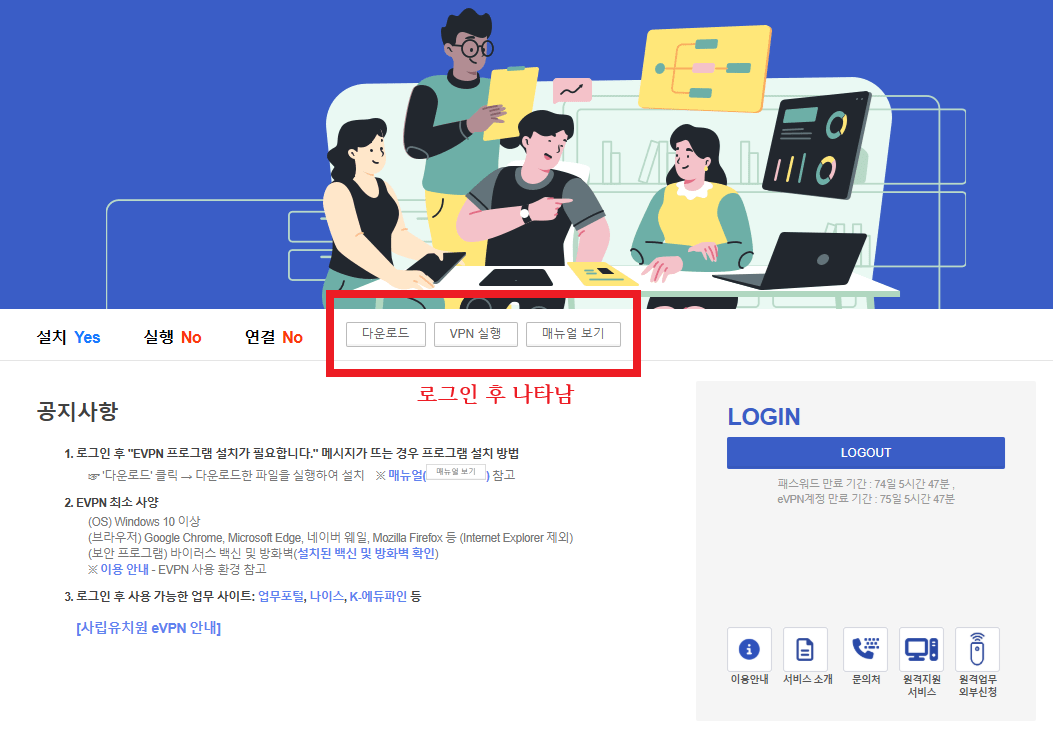 ※  EVPN 프로그램 설치 : 우선 EVPN에 로그인하고 들어가면 EVPN 프로그램 설치창이 나타남